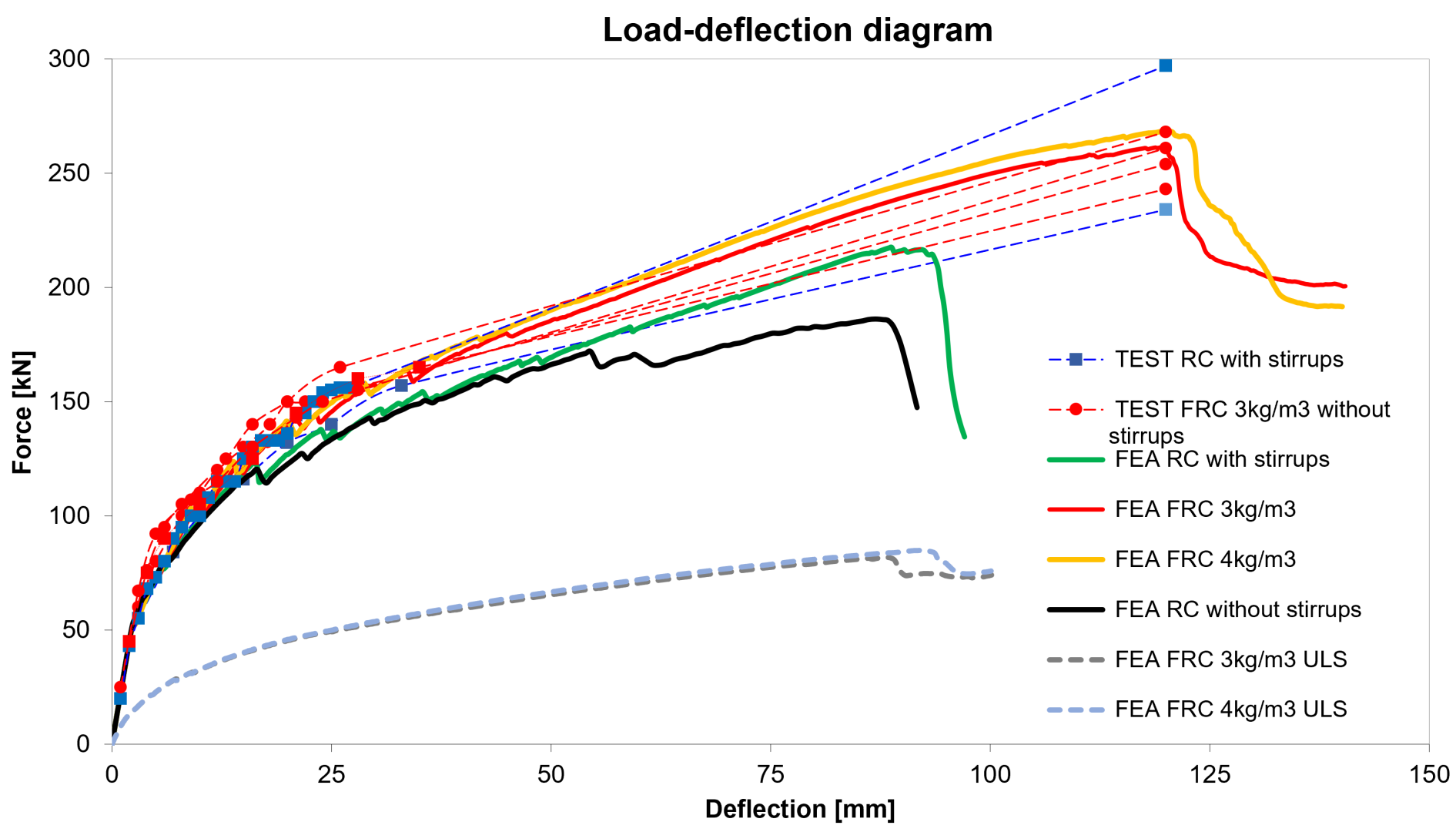 Load-deflection diagram of test and ATENA analysis