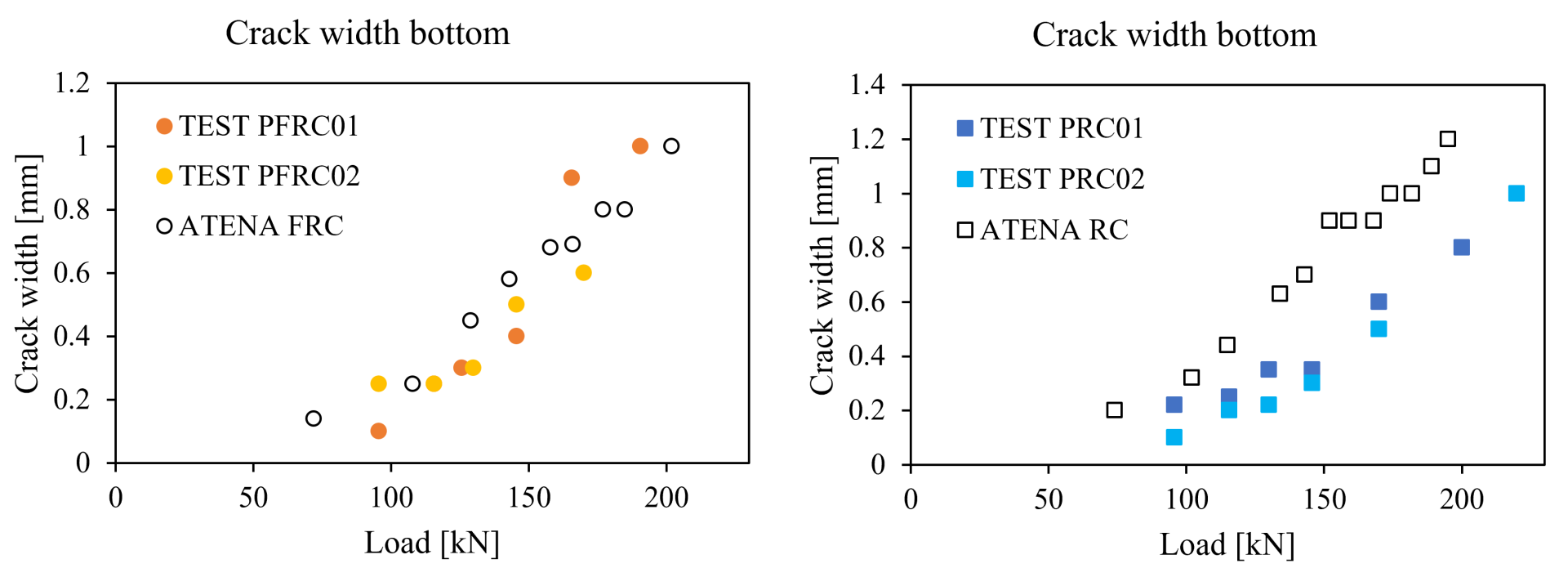 Crack width of test and FEA