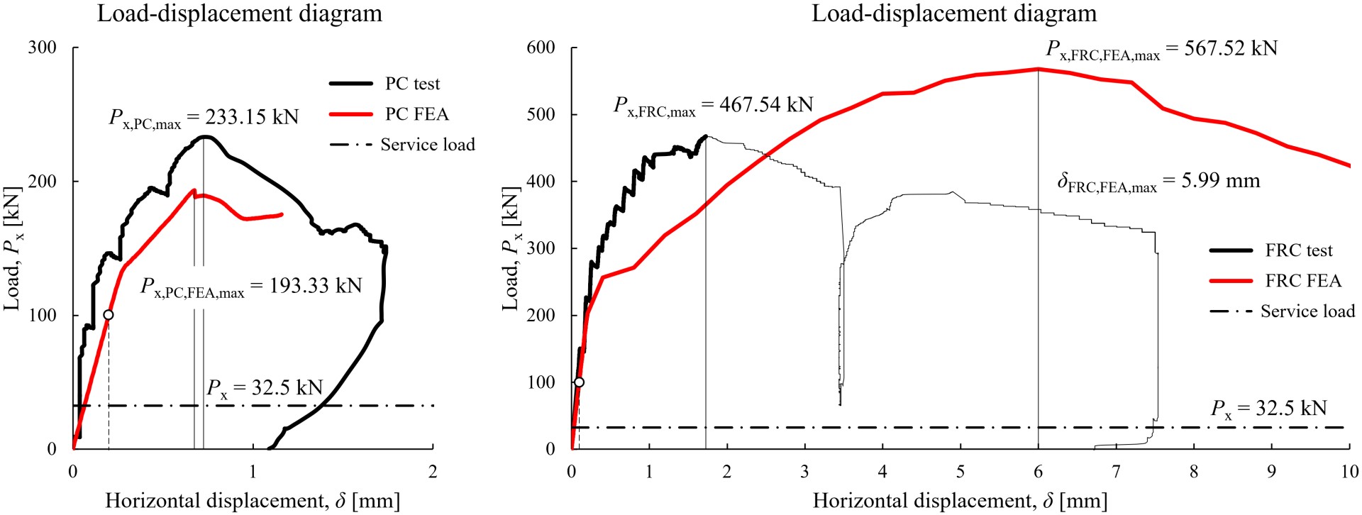Results of test and FEA