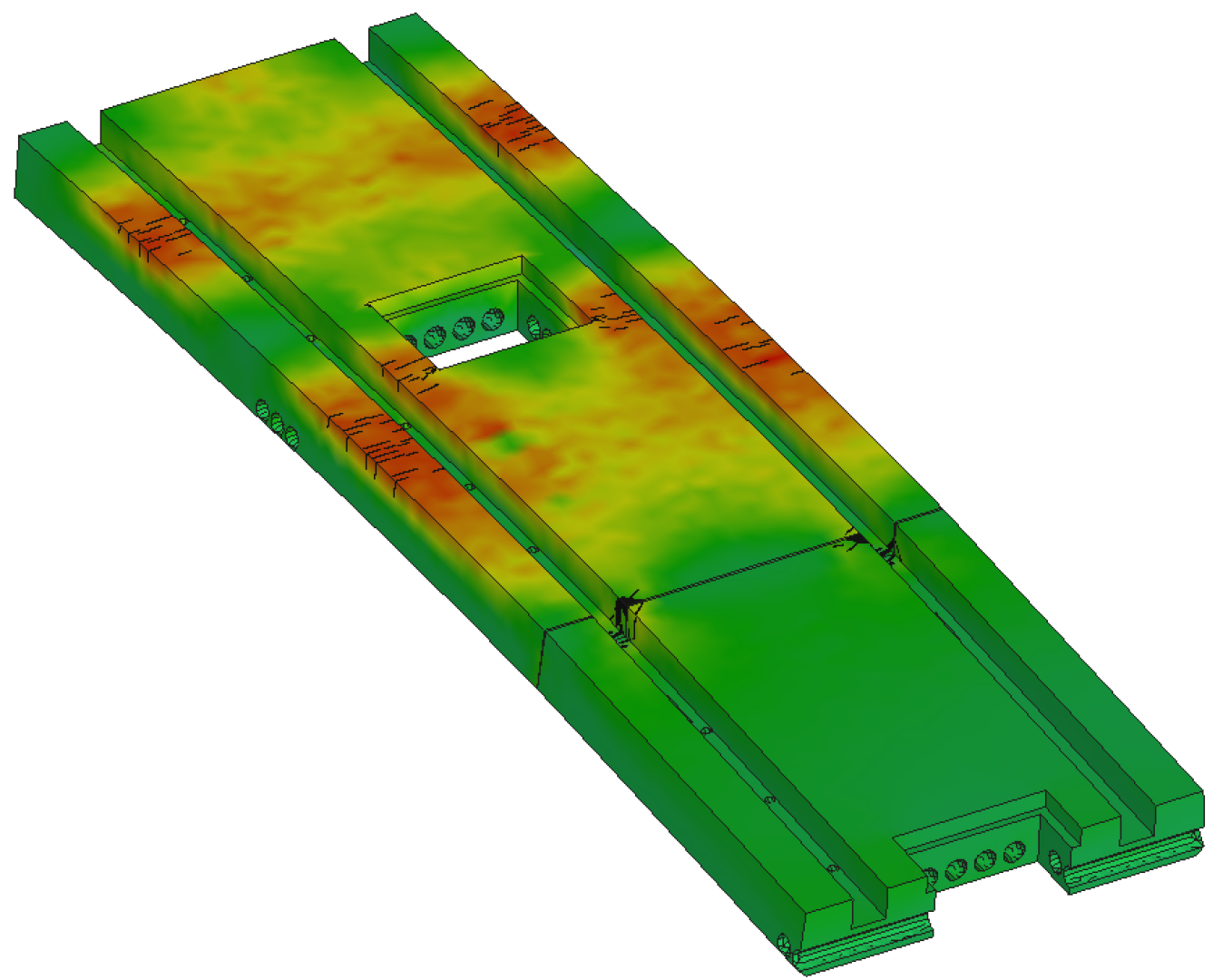 In collaboration with PreCast Advanced Track, JKP Static Ltd. was tasked with the finite element modeling of a macro synthetic fibre-reinforced concrete slab structure designed for railway construction and repair [9]. During the design process, ATENA was used to model the static, dynamic, and fatigue loads of the structure. The slab was subjected to early age verification for de-moulding, lifting, transport, and final installation.