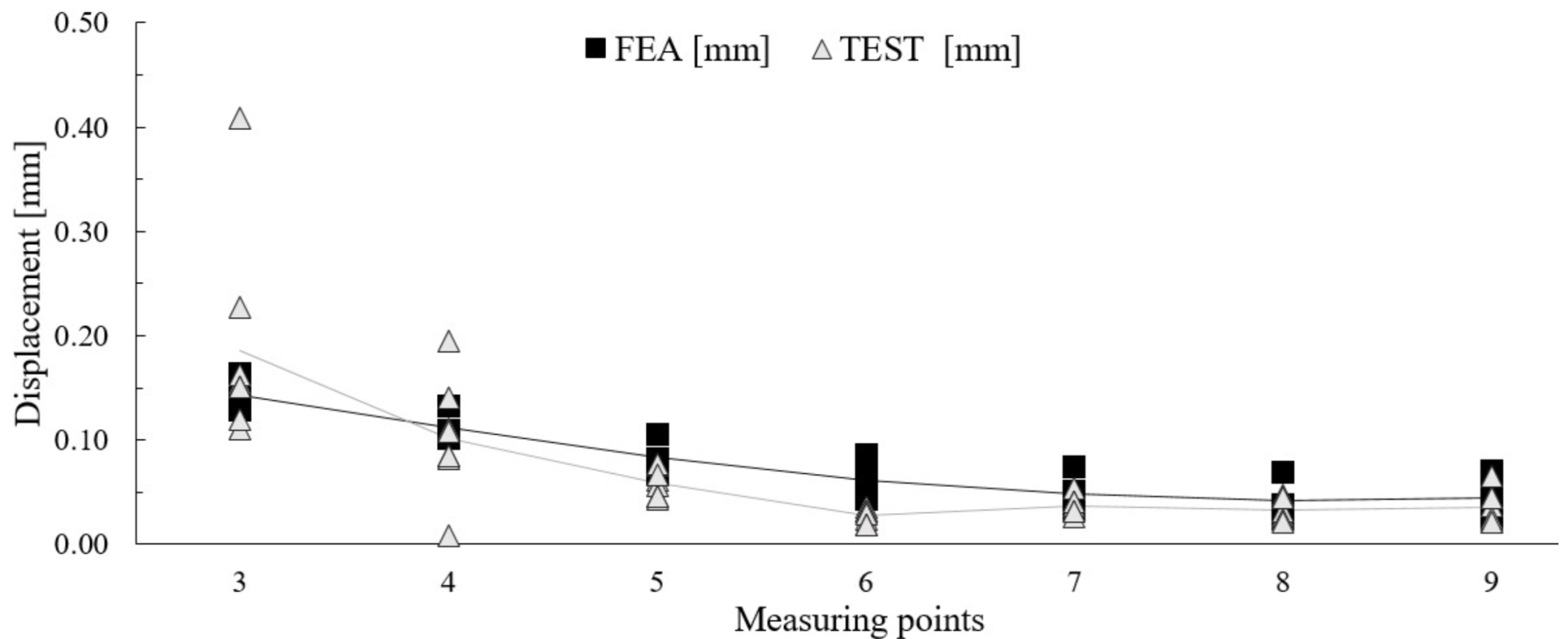 Displacement result of test and FEA