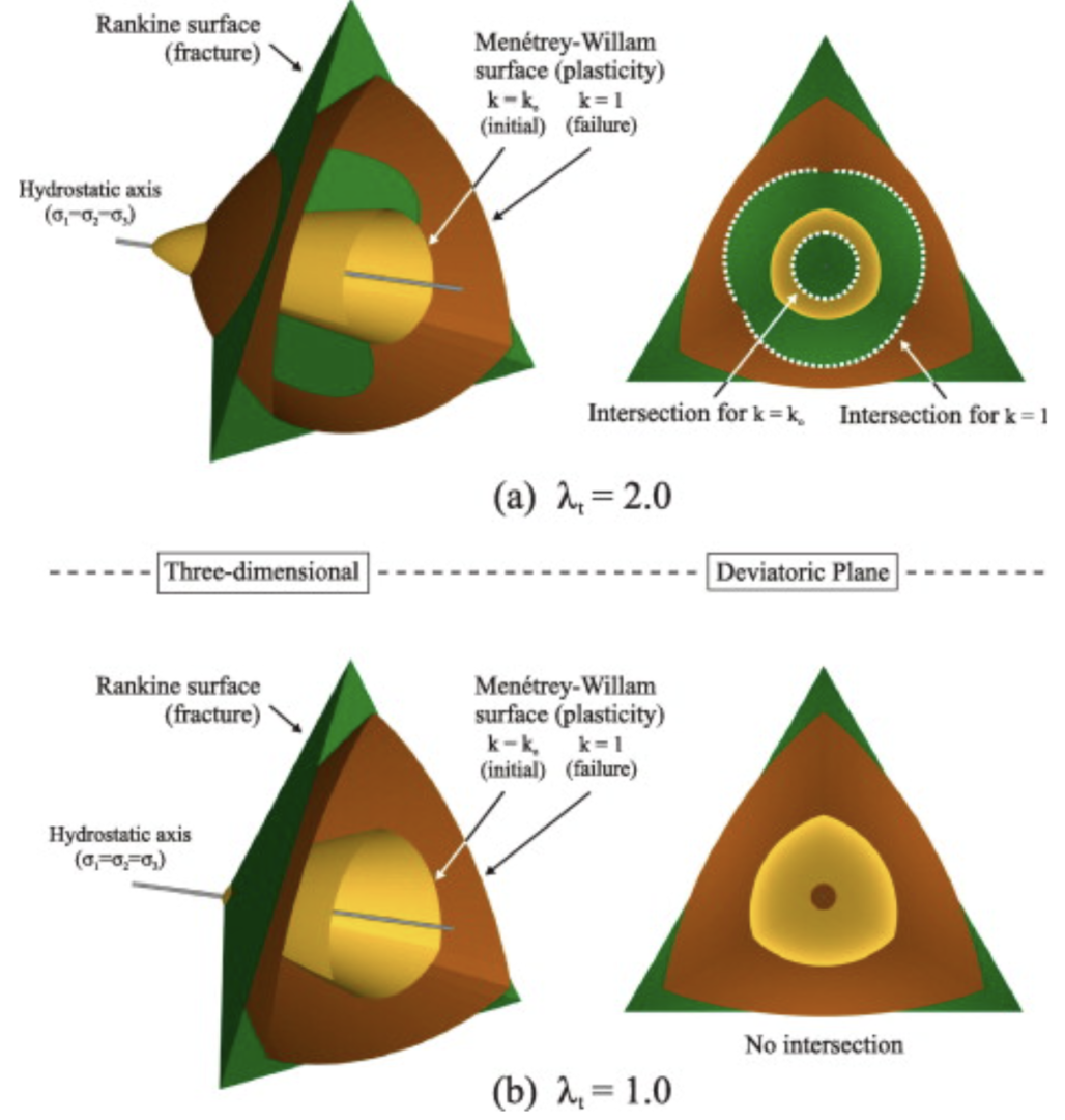 [3] Menetrey, P. and Willam, K.J. (1995). Triaxial failure criterion for concrete and its generalization. ACI Structural Journal (92/3) pp. 311–318, May 1995. http://dx.doi.org/10.14359/1132.