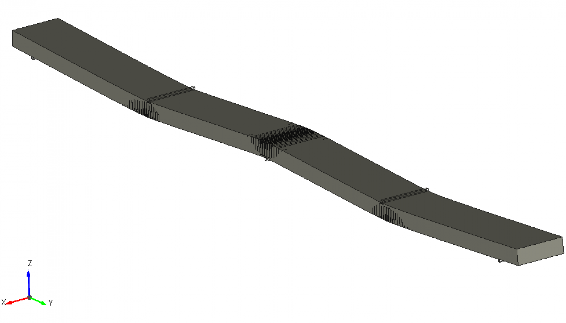 The task was to model a reinforced concrete slab with steel reinforcement, determine the deflection, crack width, strains. The structure was built and tested in real scale in the laboratory of University of Minho, Portugal.